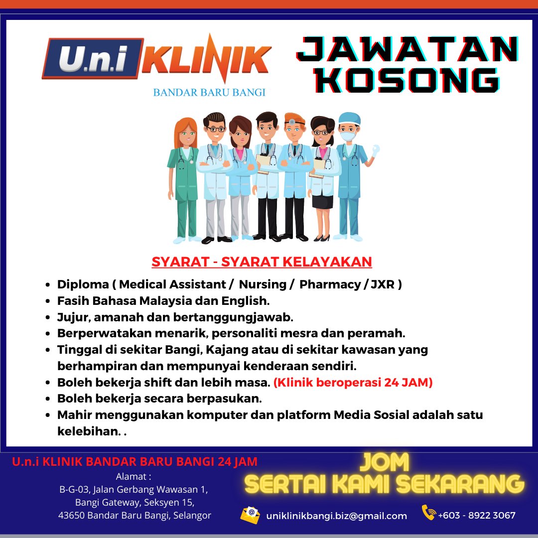 Uniklinik Bangi On Twitter Jawatan Kosong Di U N I Klinik Bandar Baru Bangi 1 Jururawat Klinik 2 Pembantu Farmasi 3 Pembantu Perubatan 4 Radiographer Minimum Diploma Nursing Medical Assistant Pharmacy Radiography Jika Berminat Boleh Hantar Resume
